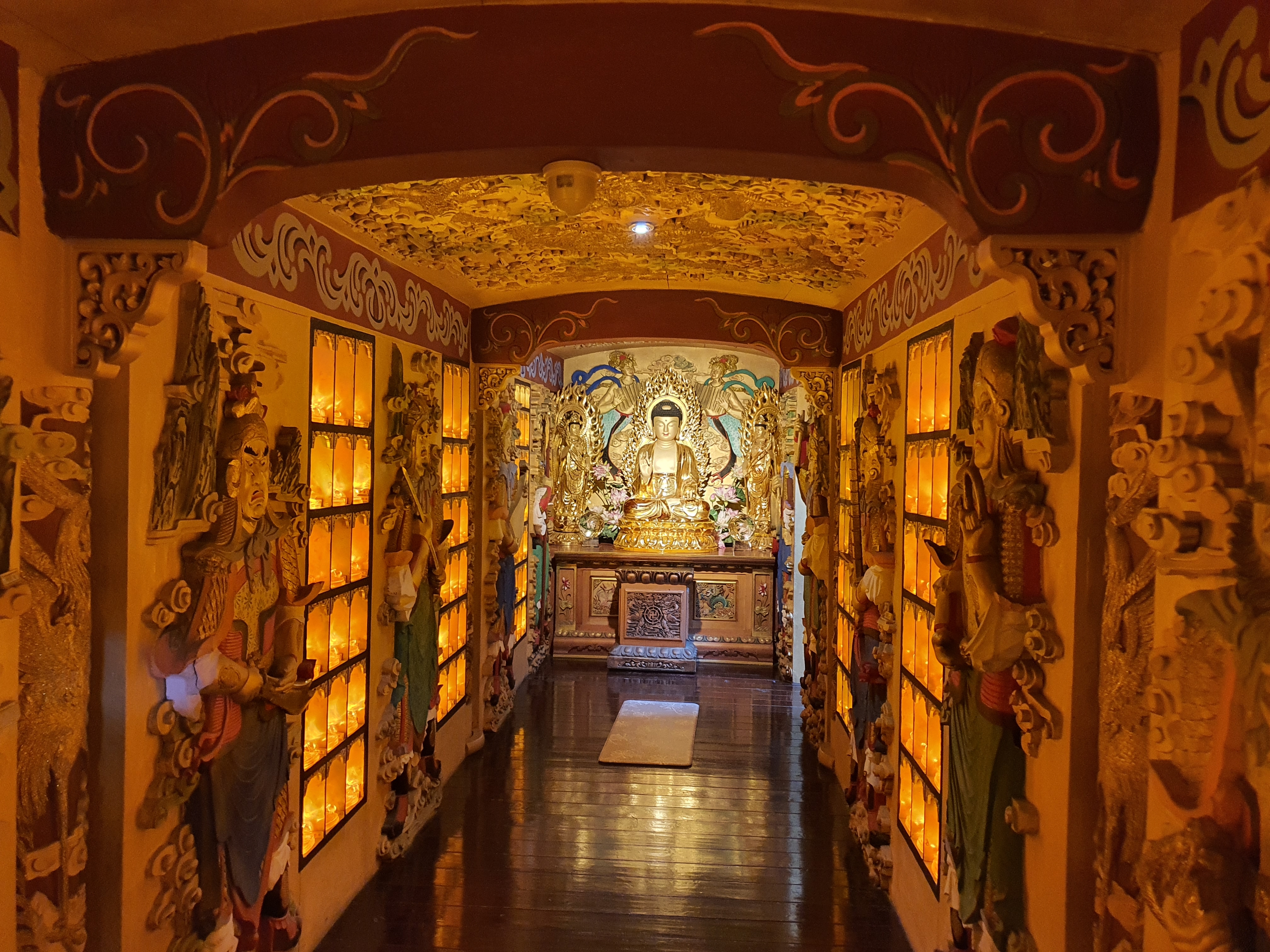 와불몸속에 작은 법당이 있습니다. 조명때문에 더 신기하고 화려함이 느껴집니다.