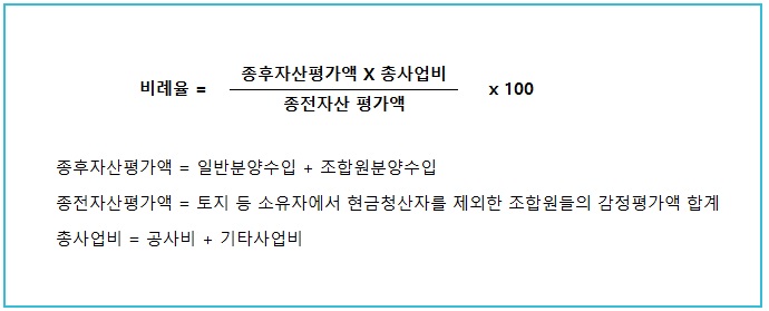 | 지분감정평가액 X 비례율 = 조합원 권리가액 |