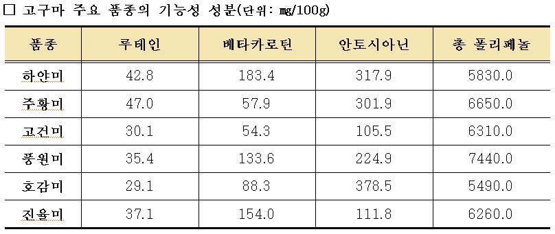 고구마 끝순에는 건강기능 성분외에도 항염증과 항당뇨와 같은 생리 활성 효과도 있는것으로 알려졌습니다. 고구마 끝순 추출물을 쥐의 면역을 담당하는 백혈구의 일종인 대식세포에 동도별로 처리해 염증억제 정도를 관찰한 결과 염증 반응시 생성되는 지표인 산화질소(NO) 발생량을 최대 76.4% 억제 한다는 사실을 확인했습니다.