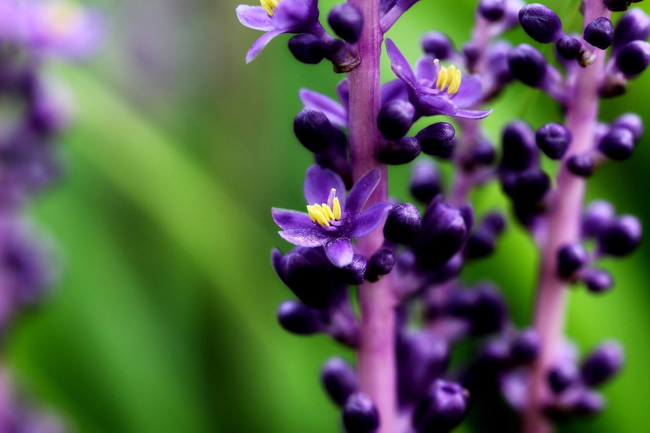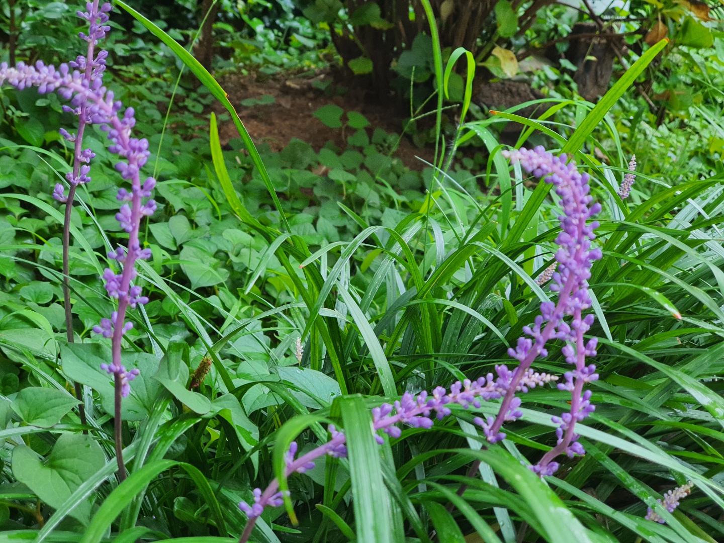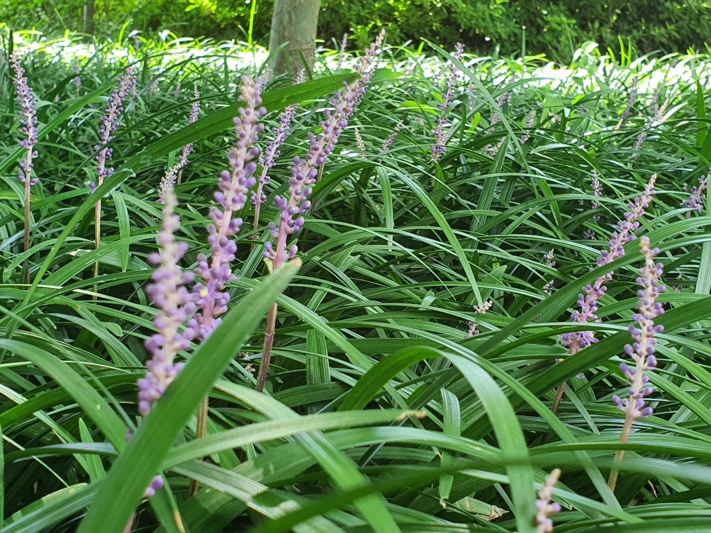 이제 보랏빛 맥문동 꽃이 조금씩 보이기 시작했습니다. 맥문동은 소나무등 여러 나무 그늘 밑에 심어져 신비롭고 환상적인 분위기를 보여주고 있습니다. 그늘에서도 잘 자라기 때문에 도심의 가로수 밑이나 아파트 화단에서도 심심치 않게 볼 수 있습니다. 잎은 난과 비슷하게 생겼고 여름에 보라색 꽃이 피는 백합과에 속하는 여러해살이 풀입니다.