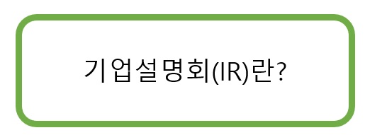 기업설명회(IR : Investor Relation)는 투자자를 대상으로 기업의 재무기능과 홍보기능을 결합시켜 기업의 실적과 미래비전을 제시합니다. 이때 기업내용에 관한 좋은 정보는 물론이고 부정적인 정보도 투자자에게 알려주는 것을 가정하고 있습니다.