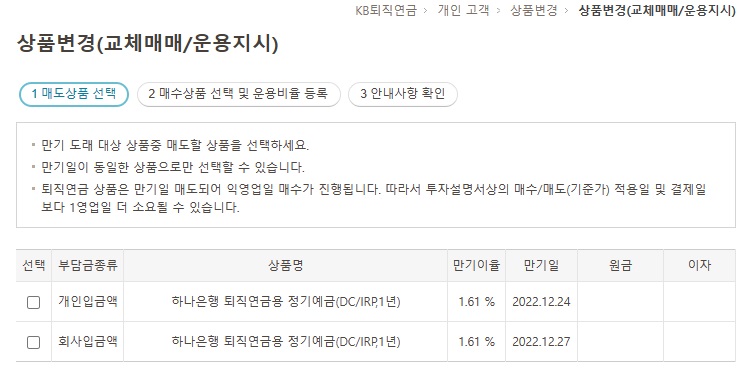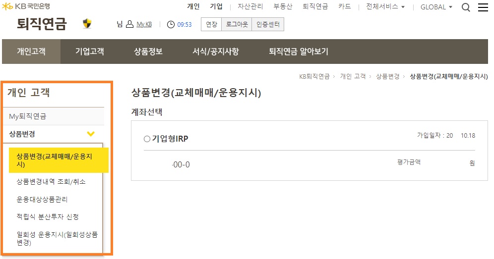 국민은행 퇴직연금에 들어가서 상품을 변경하면 됩니다. 개인의 성향에 맞게 예금, 펀드, 채권 등을 선택하면 됩니다.