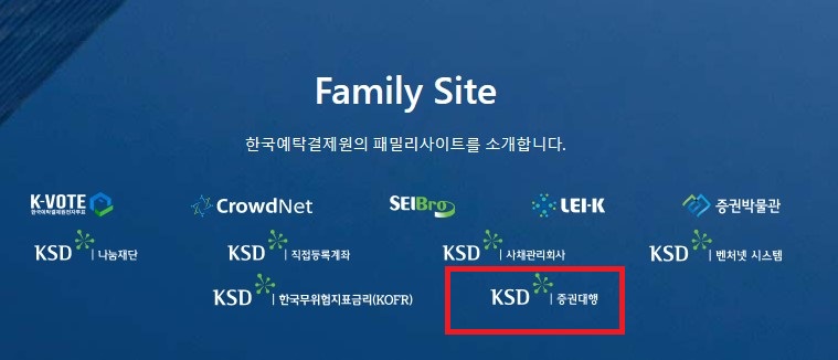 1. 먼저 한국예탁결제원(www.ksd.or.kr)에 들어갑니다. 스크롤을 내리면 중간쯤 아래 화면이 나옵니다.