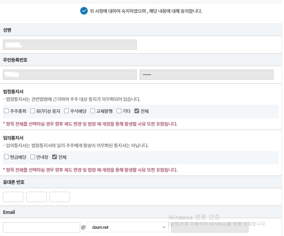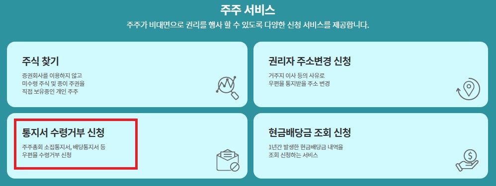3월 주총참석 우편물을 받으면서 종이낭비, 받은 사람 쓰레기 버리기도 일인 이런 일을 왜 할까? 주총 끝나면 이제 안 오겠지 하고 귀찮아서 지나쳤습니다. 하지만 중간배당을 생각하지 못했네요. 귀차니즘을 버리고 오늘은 통지서 수령거부 신청을 해 봅니다.