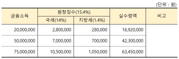 그래서 금융소득이 7,500만원이하일 경우 추가로 더 납부할 세금은 없지만 종합소득세 신고 의무는 있습니다.